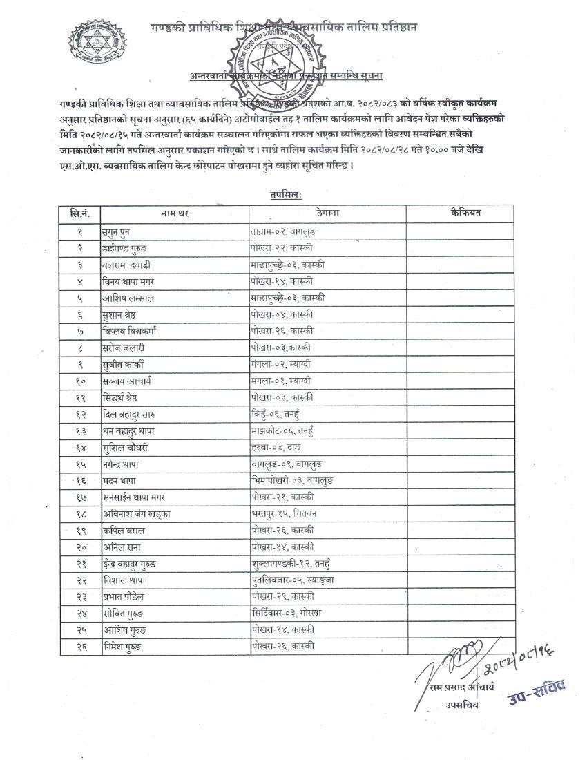 पलम्वर तालिममा सहभागी हुन आवेदन दिनेको नामावली प्रकाशन गर...Read More